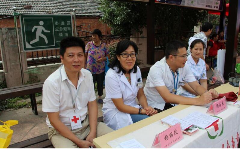 為紀(jì)念“世界急救日”,由南京市紅十字會、秦淮區(qū)紅十字會共同主辦以“大走訪,暖民心,愛心助民微幸福”為主題的社區(qū)活動。9月8日下午,我院張革院長親自帶領(lǐng)心血管內(nèi)科楊麗玫主任、消化內(nèi)科楊連生主任、外科朱婉嬋護(hù)士長走進(jìn)曙光里社區(qū),為廣大社區(qū)居民的健康問診把脈。
