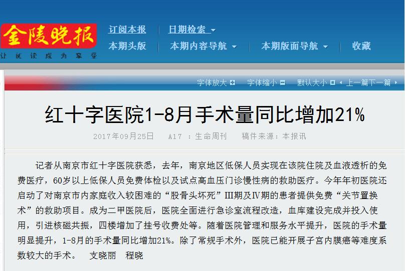 記者從南京市紅十字醫(yī)院獲悉,去年,南京地區(qū)低保人員實(shí)現(xiàn)在該院住院及血液透析的免費(fèi)醫(yī)療,60歲以上低保人員免費(fèi)體檢以及試點(diǎn)高血壓門診慢性病的救助醫(yī)療。今年年初醫(yī)院還啟動(dòng)了對(duì)南京市內(nèi)家庭收入較困難的“股骨頭壞死”Ⅲ期及Ⅳ期的患者提供免費(fèi)“關(guān)節(jié)置換術(shù)”的救助項(xiàng)目。成為二甲醫(yī)院后,醫(yī)院全面進(jìn)行急診室流程改造,血庫(kù)建設(shè)完成并投入使用,引進(jìn)核磁共振,四樓增加了掛號(hào)收費(fèi)處等。隨著醫(yī)院管理和服務(wù)水平提升,醫(yī)院的手術(shù)量明顯提升,1-8月的手術(shù)量同比增加21%。除了常規(guī)手術(shù)外,醫(yī)院已能開展子宮內(nèi)膜癌等難度系數(shù)較大的手術(shù)。