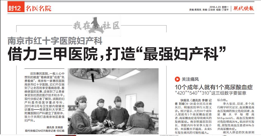 南京市紅十字醫(yī)院婦產(chǎn)科自2009年以來(lái)一直被評(píng)為“南京市醫(yī)學(xué)重點(diǎn)專(zhuān)科”,自2015年9月起,成立了南京醫(yī)科大學(xué)第二附屬醫(yī)院·南京市紅十字醫(yī)院婦產(chǎn)科醫(yī)聯(lián)體。