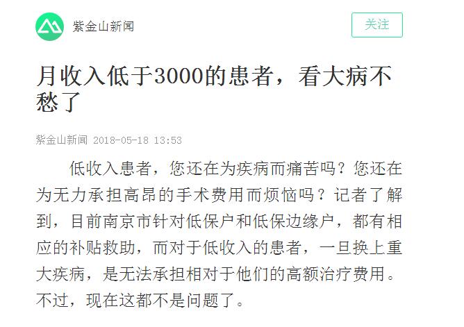 南京居民:大病報銷80%-85%