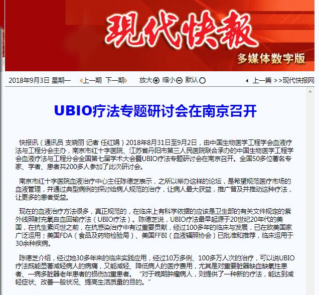 2018年8月31日至9月2日,由中國生物醫(yī)學(xué)工程學(xué)會(huì)血液療法與工程分會(huì)主辦,南京市紅十字醫(yī)院、江蘇省丹陽市第三人民醫(yī)院聯(lián)合承辦的中國生物醫(yī)學(xué)工程學(xué)會(huì)血液療法與工程分會(huì)全國第七屆學(xué)術(shù)大會(huì)暨UBIO療法專題研討會(huì)在南京召開。全國50多位著名專家、學(xué)者、患者共200多人參加了此次研討會(huì)。