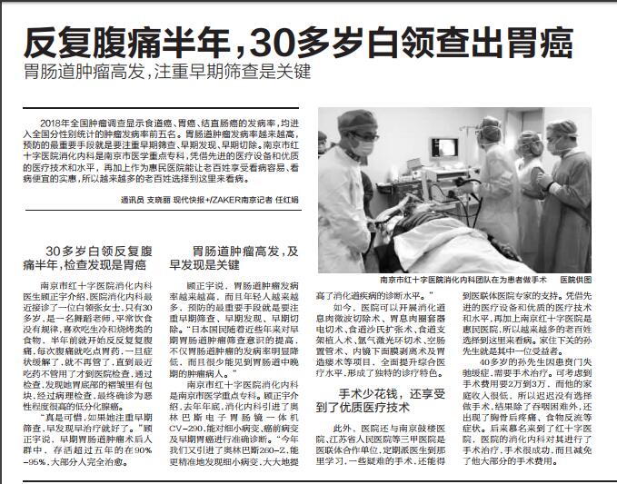 2018年全國腫瘤調(diào)查顯示食道癌、胃癌、結(jié)直腸癌的發(fā)病率,均進(jìn)入全國分性別統(tǒng)計的腫瘤發(fā)病率前五名。胃腸道腫瘤發(fā)病率越來越高,預(yù)防的最重要手段就是要注重早期篩查,早期發(fā)現(xiàn)、早期切除。南京市紅十字醫(yī)院消化內(nèi)科是南京市醫(yī)學(xué)重點(diǎn)??疲瑧{借先進(jìn)的醫(yī)療設(shè)備和優(yōu)質(zhì)的醫(yī)療技術(shù)和水平,再加上作為惠民醫(yī)院能讓老百姓享受看病容易、看病便宜的實(shí)惠,所以越來越多的老百姓選擇到這里來看病。