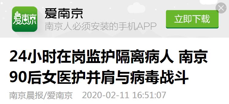24小時(shí)在崗監(jiān)護(hù)隔離病人 南京90后女醫(yī)護(hù)并肩與病毒戰(zhàn)斗