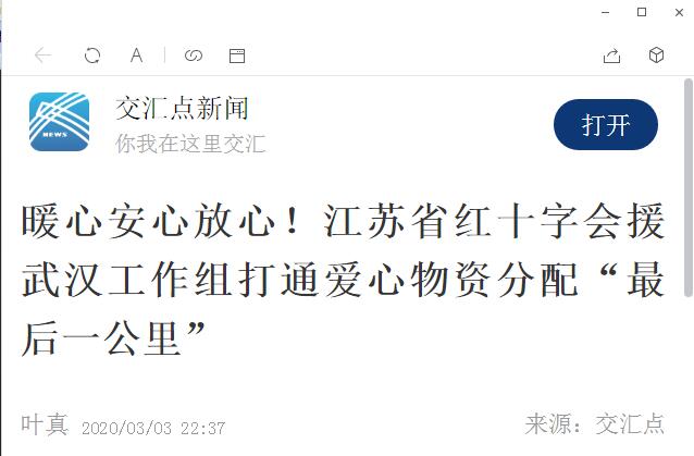 交匯點訊 “一片口罩一片情,一垛物資滿屋情。”正在武漢支援的江蘇省紅十字會賑災救濟部部長聶城在自己的朋友圈發(fā)布了這樣一句感悟。抵達武漢工作一個月,江蘇省紅十字會武漢工作組成員們雖然辛苦,但也收獲著感動。