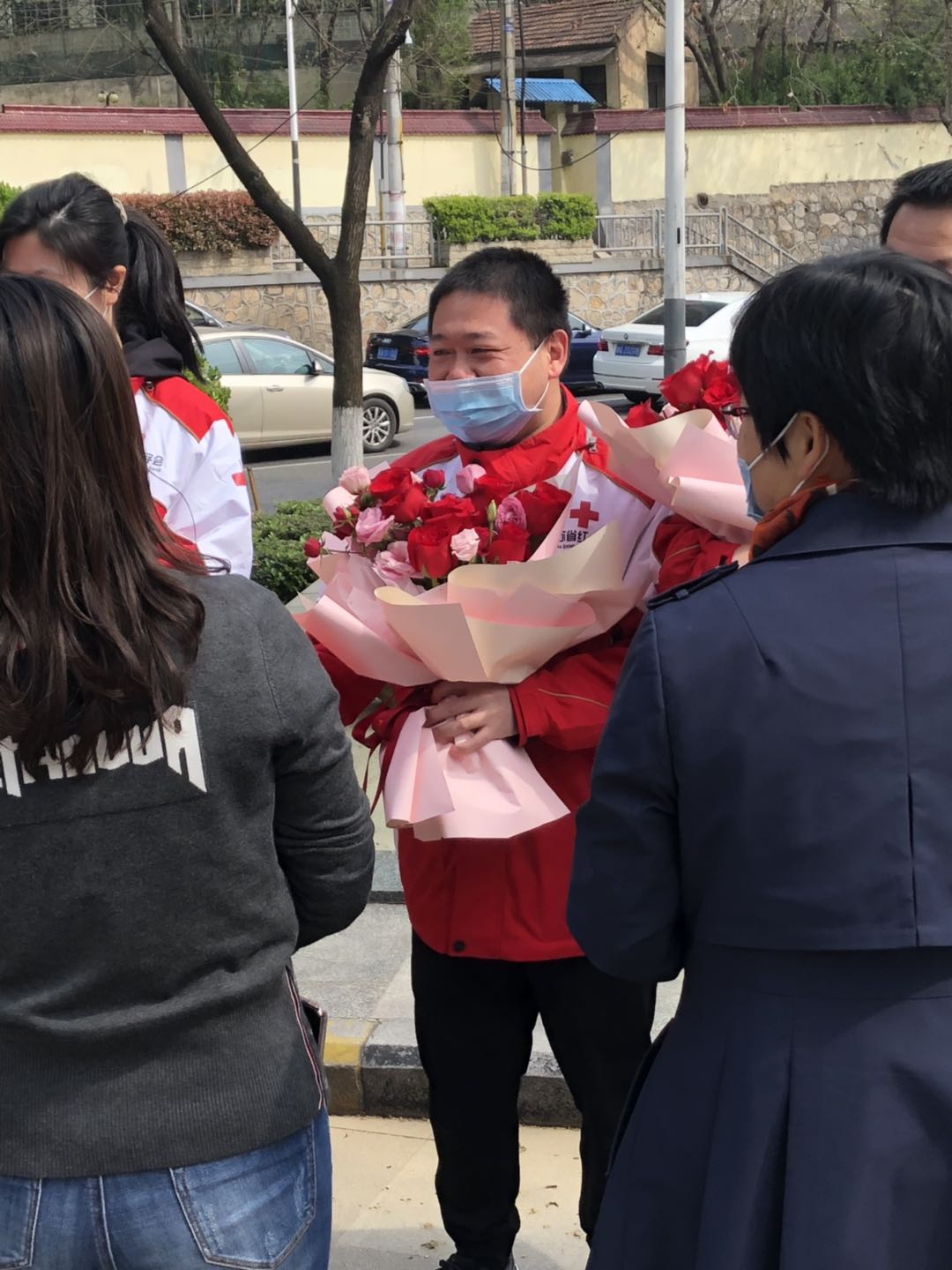 4月6日,作為江蘇省紅十字會(huì)馳援湖北工作組之一的抗疫戰(zhàn)士——南京市紅十字醫(yī)院醫(yī)務(wù)科錢鵬同志結(jié)束14天集中隔離,順利“出關(guān)”,平安回歸。江蘇省紅十字會(huì)為他們頒發(fā)了榮譽(yù)證書,手捧鮮花的英雄們,掩不住內(nèi)心的愉悅。