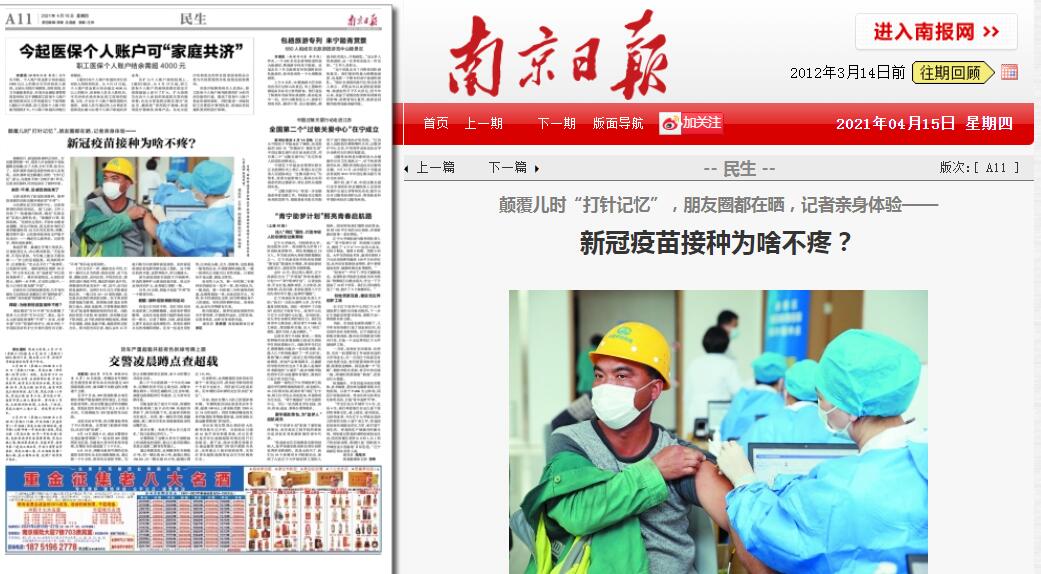 春暖花開,新冠疫苗接種正當(dāng)時。打完重要的第一針,很多人興奮地發(fā)個朋友圈曬證炫耀:辦了大事,打針不疼,我長大了。很多接種完新冠疫苗的南京人會發(fā)現(xiàn),此次接種完全顛覆兒時的“打針記憶”,那么,究竟疼不疼?為啥不疼?昨天,記者親歷接種,同時也采訪了接種專家。