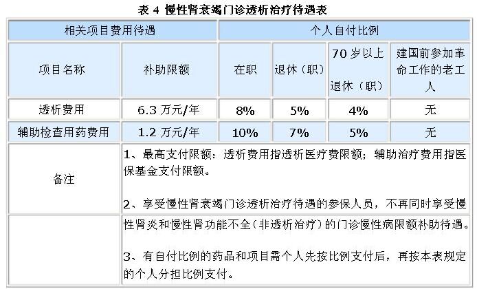 門特人員因門特病種到本人選擇的定點(diǎn)醫(yī)院就診或持外配處方到本人選擇的定點(diǎn)藥店購藥時(shí),須出具市民卡和《門診特定項(xiàng)目人員專用病歷》。發(fā)生的符合基本醫(yī)療保險(xiǎn)規(guī)定的門特項(xiàng)目醫(yī)療費(fèi)用,直接與定點(diǎn)醫(yī)院或定點(diǎn)藥店收費(fèi)前臺進(jìn)行結(jié)算;乙類藥品和乙類診療項(xiàng)目先由參保人員分別按規(guī)定的比例自付,其余部分再按基本醫(yī)療保險(xiǎn)規(guī)定支付。血液透析個(gè)人負(fù)擔(dān)比例見表4;惡性腫瘤門診治療個(gè)人負(fù)擔(dān)比例見表6。